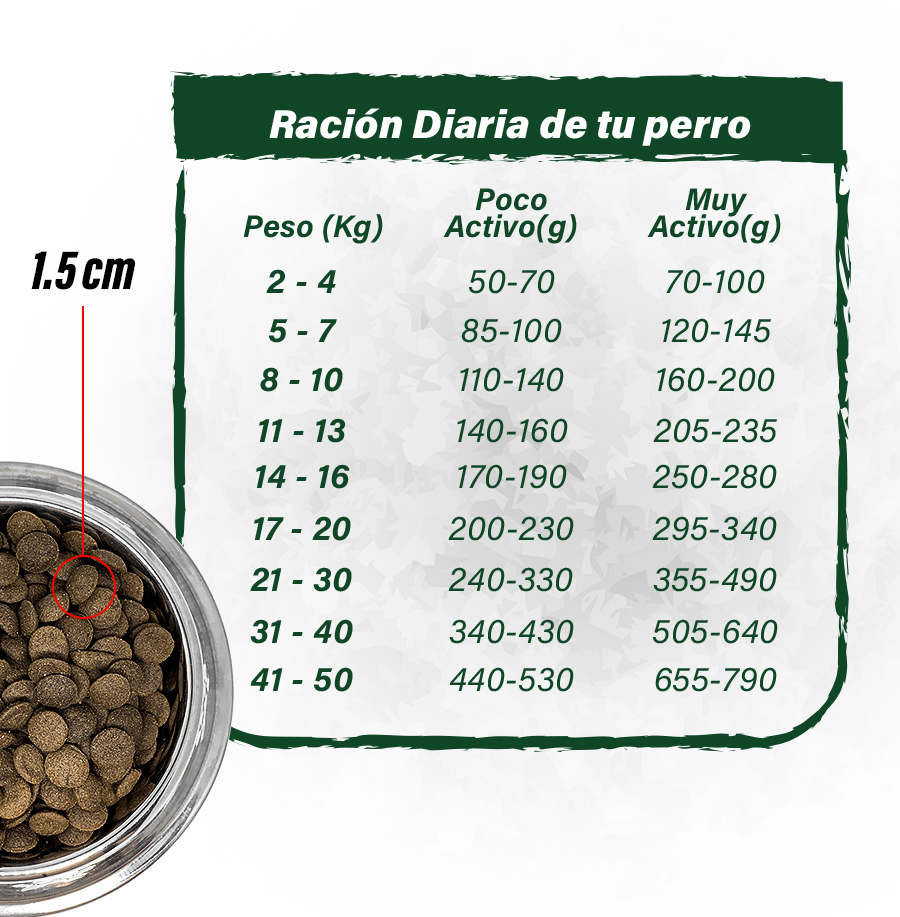 7. Transición de 15 Días: Es importante realizar una transición gradual de 15 días de otro alimento a este. Esto ayuda a evitar problemas digestivos y permite que el sistema digestivo de tu perro se adapte al nuevo alimento.